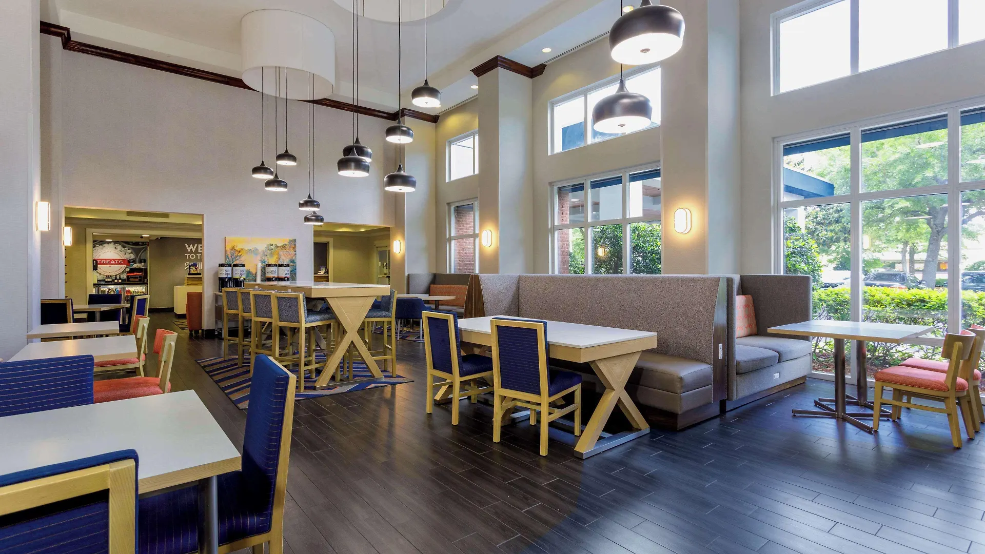 Das Hampton Inn & Suites Tallahassee I-10-Thomasville Road bietet ein heißes Frühstücksbuffet an. Zu den Speisemöglichkeiten gehört auch das Restaurant Steak 'n Shake in der Nähe vom Hotel.